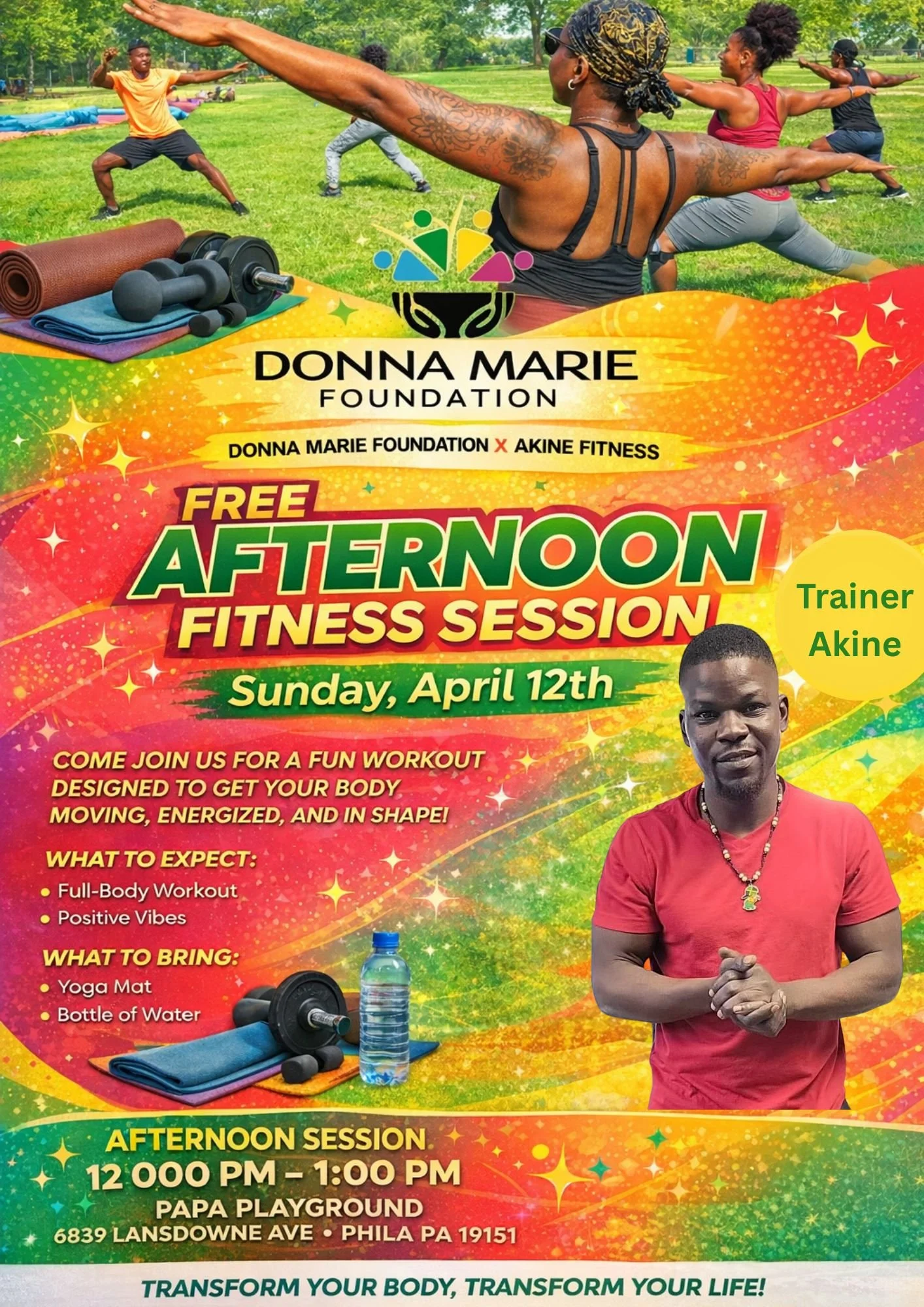 The Donna Marie Foundation teamed up with fitness trainer Akine to deliver an energizing and uplifting fitness experience that brought the community together. Attendees enjoyed a dynamic workout designed for all levels, combining motivation, movement, and positive vibes from start to finish.